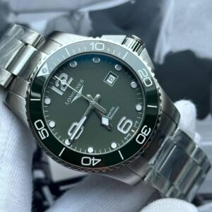 The Longines HydroConquest 41mm Automatic is a standout model in the world of luxury dive watches, merging Swiss craftsmanship with a sporty, contemporary design. This watch features a striking green sunray dial paired with a matching green unidirectional rotating bezel, offering a dynamic and bold aesthetic inspired by the ocean.