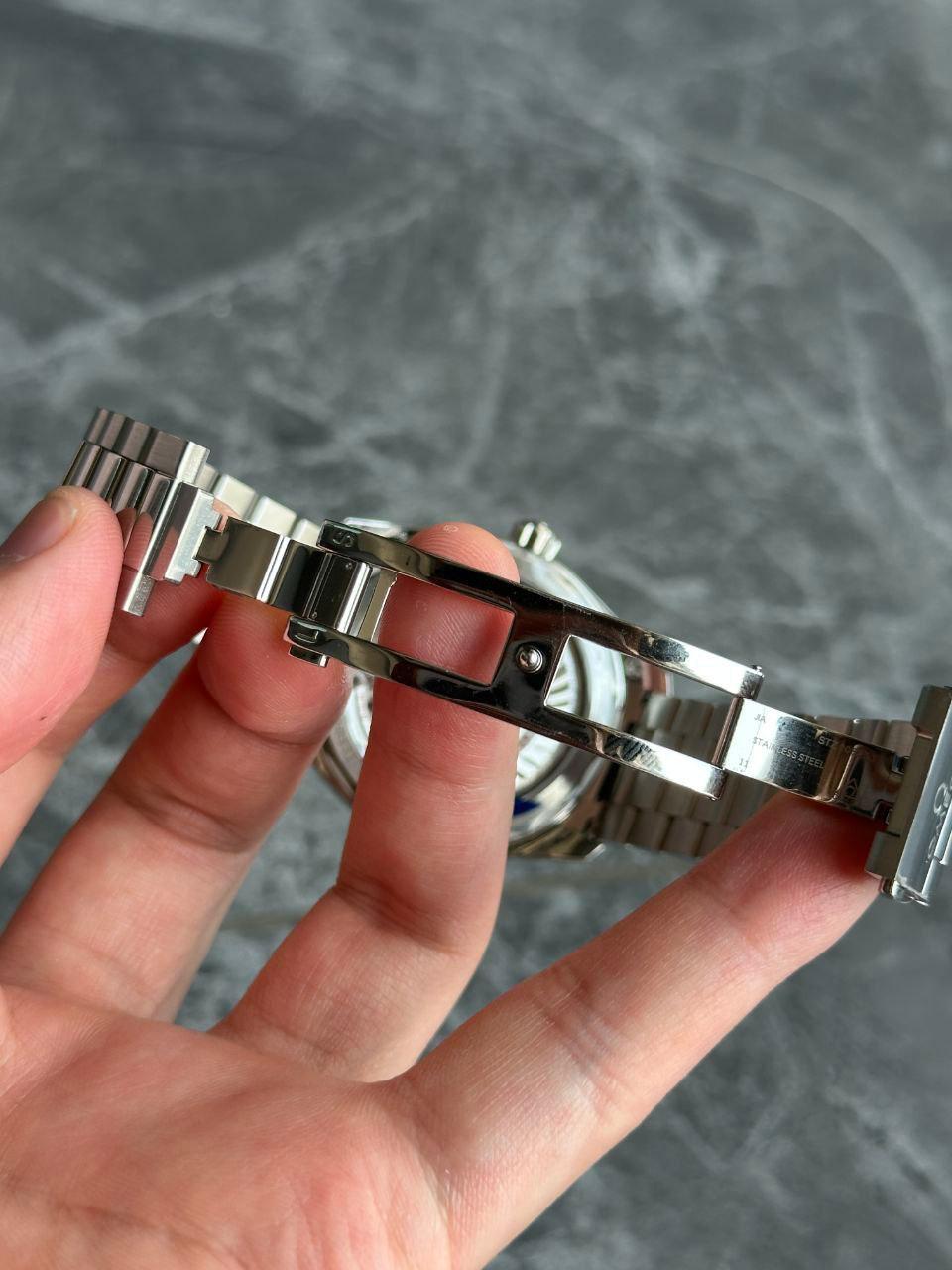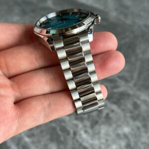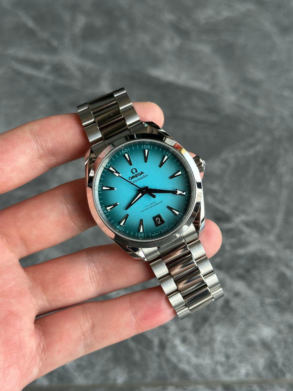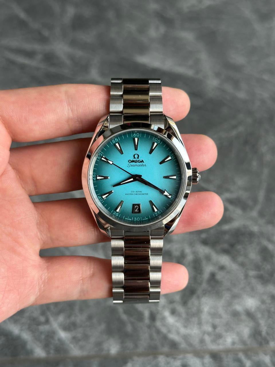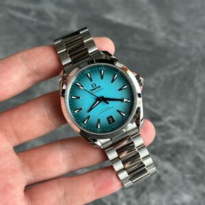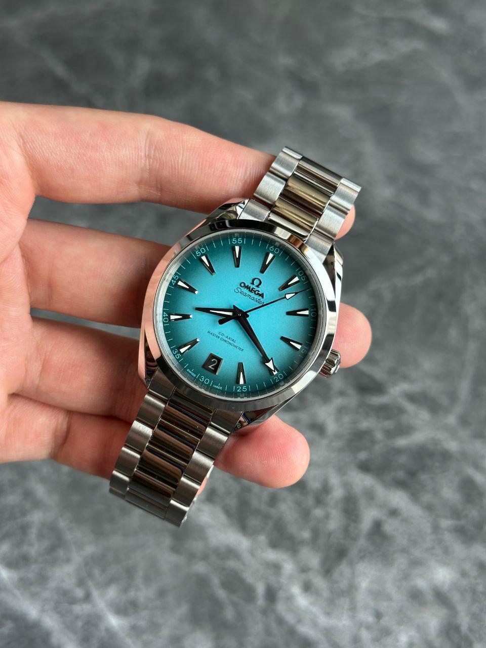 A refined blend of elegance and precision, the Omega Seamaster Aqua Terra 150M features a striking turquoise gradient dial, certified Master Chronometer performance, and a robust stainless steel bracelet—perfect for collectors who value both luxury and everyday versatility.
