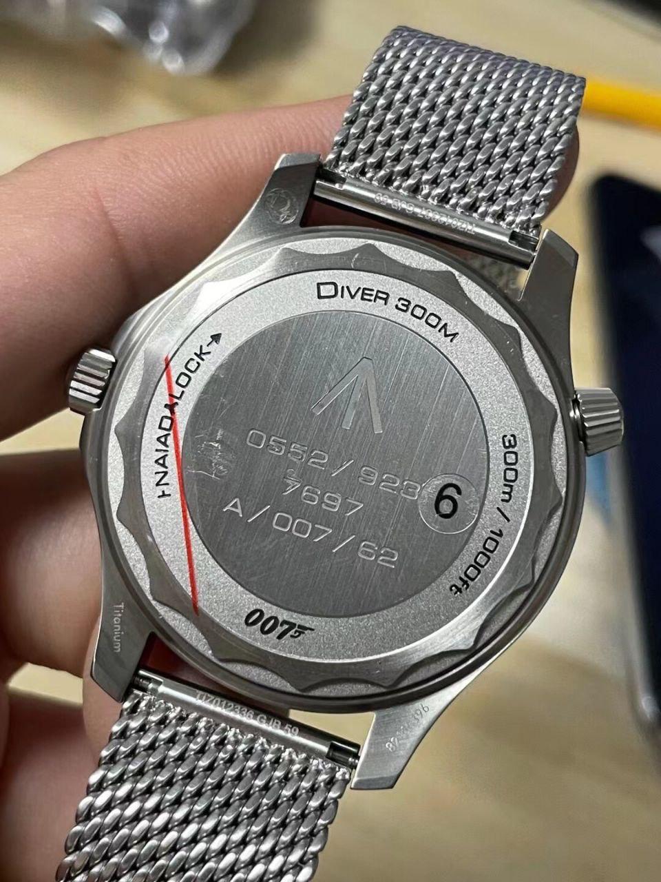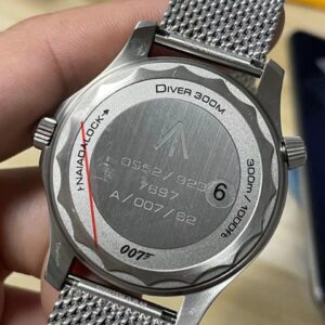 Crafted from Grade 2 titanium, the watch is exceptionally lightweight yet incredibly strong—ideal for demanding environments and active lifestyles. The case, bezel, and mesh bracelet (or NATOs on some configurations) embrace a military-inspired aesthetic that pays homage to Bond’s Royal Navy background.