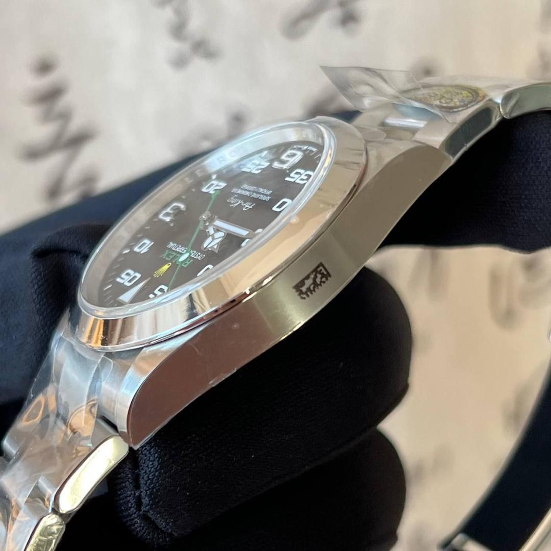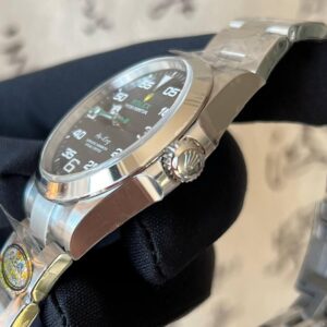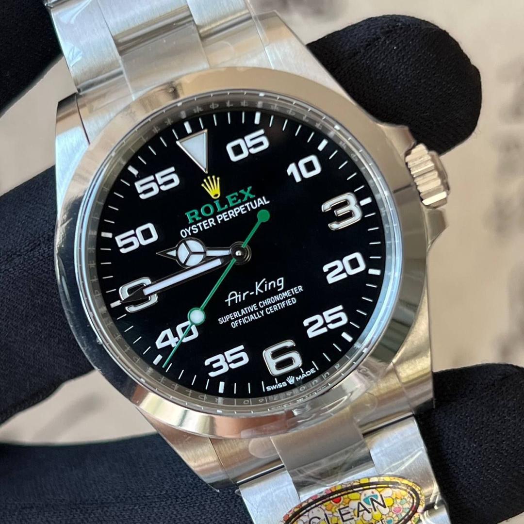 Rolex Oyster Perpetual Air-King in Oystersteel with a black aviation-inspired dial. Featuring a robust 40mm Oyster case, Oyster bracelet, and precise automatic movement, this model combines heritage, durability, and striking modern design.
